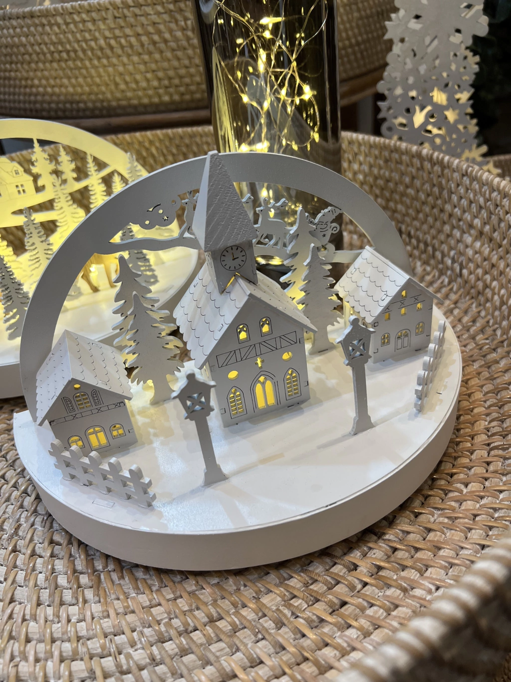 Guía con luz paisaje de color blanco. Iluminación con pilas.